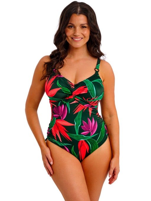 Fantasie SwimwearWe love this jungle print one-piece! It has hidden underwires for support and a figure-flattering twist front detail. It also has adjustable tie si...