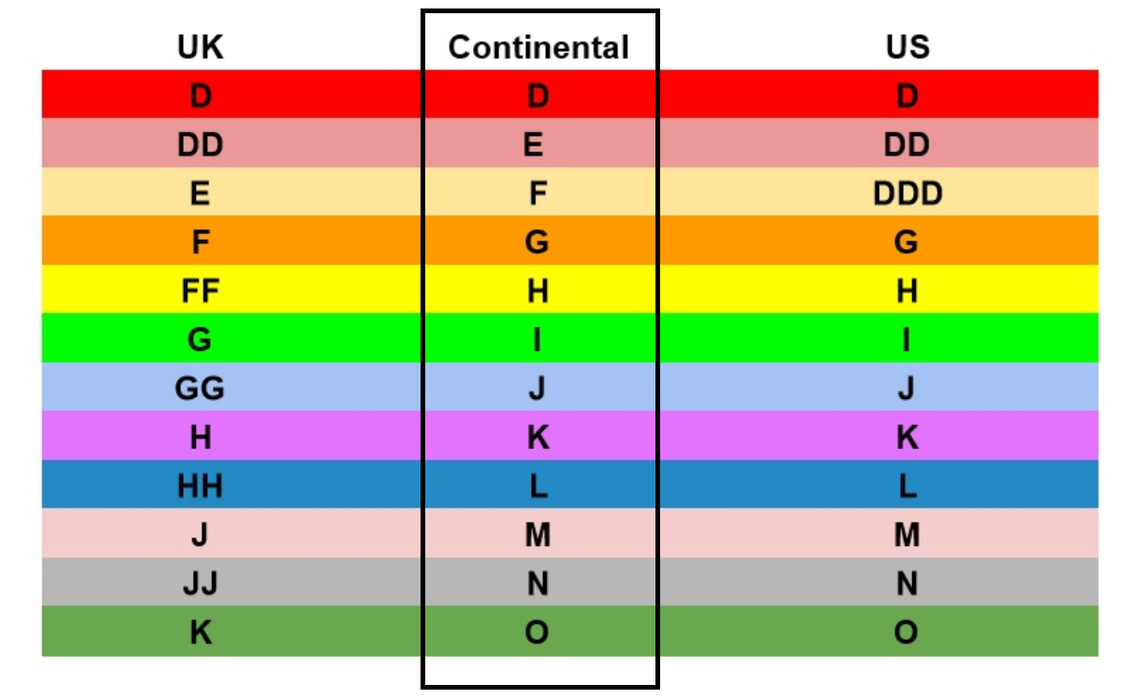 The band and cup are true to size. Continental sizes.