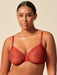 - Sheer lace cups with underwires and a floral pattern
