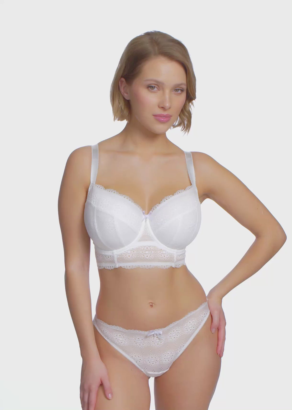 Say hello to the stunning Posie Longline Bra, bringing effortless summer charm with the cotton broderie-anglaise inspired lace and beautifully clean finish. This longline style features a separate floating inner layer for added support and flattering shaping, all while keeping a light, easy feel against the skin.